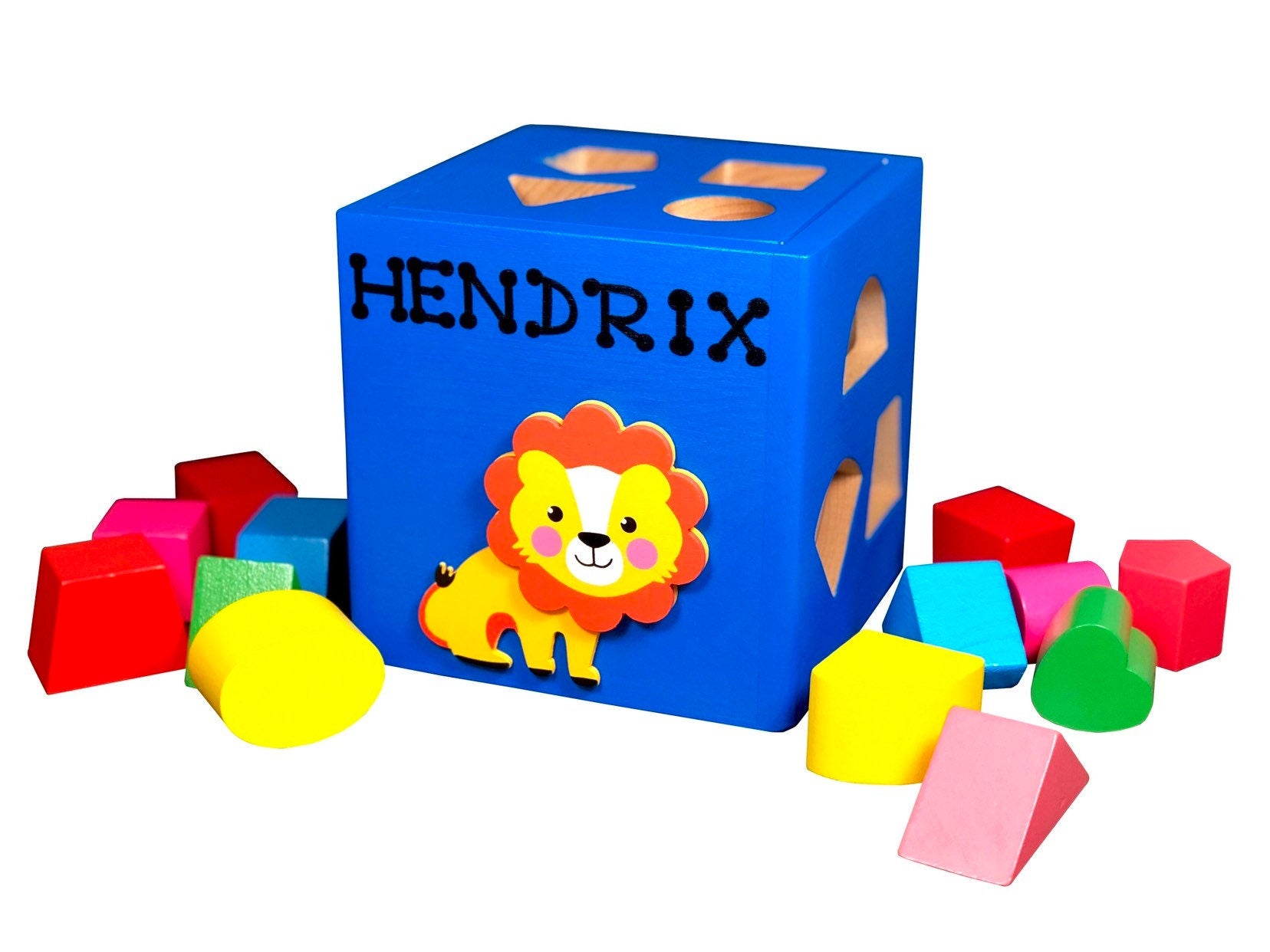 It is customized colorful shape sorting cube. It comes with 13 different colorful shape blocks.